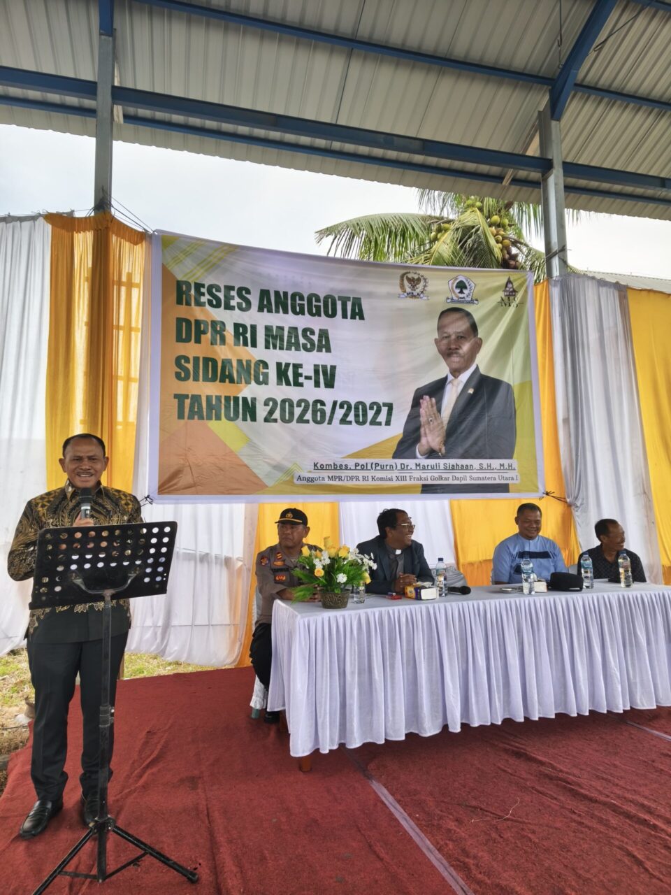 Kehadiran Anggota Komisi XIII DPR RI dari Fraksi Partai Golkar, Kombes Pol (Purn) Dr. Maruli Siahaan, SH.MH. dalam kegiatan Reses Masa Sidang ke-IV Tahun 2026/2027 di Desa Sukamandi Hulu, Kecamatan Pagar Merbau, Kabupaten Deli Serdang, menjadi momen bersejarah bagi masyarakat setempat.